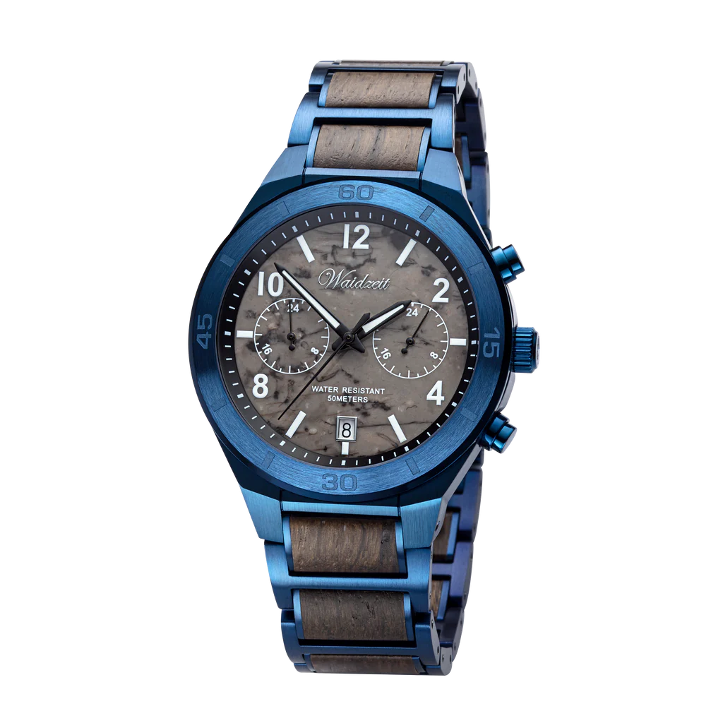 A „Jupiter” férfi karóra a Waidzeit exkluzív Planetáris kollekciójából az erőt, eleganciát és az időtlen szépséget egyesíti. A Jupiter bolygó ihlette modell a természet erejét és az órásmesterség precizitását testesíti meg a kettős időzóna- és dátumkijelzésnek köszönhetően.